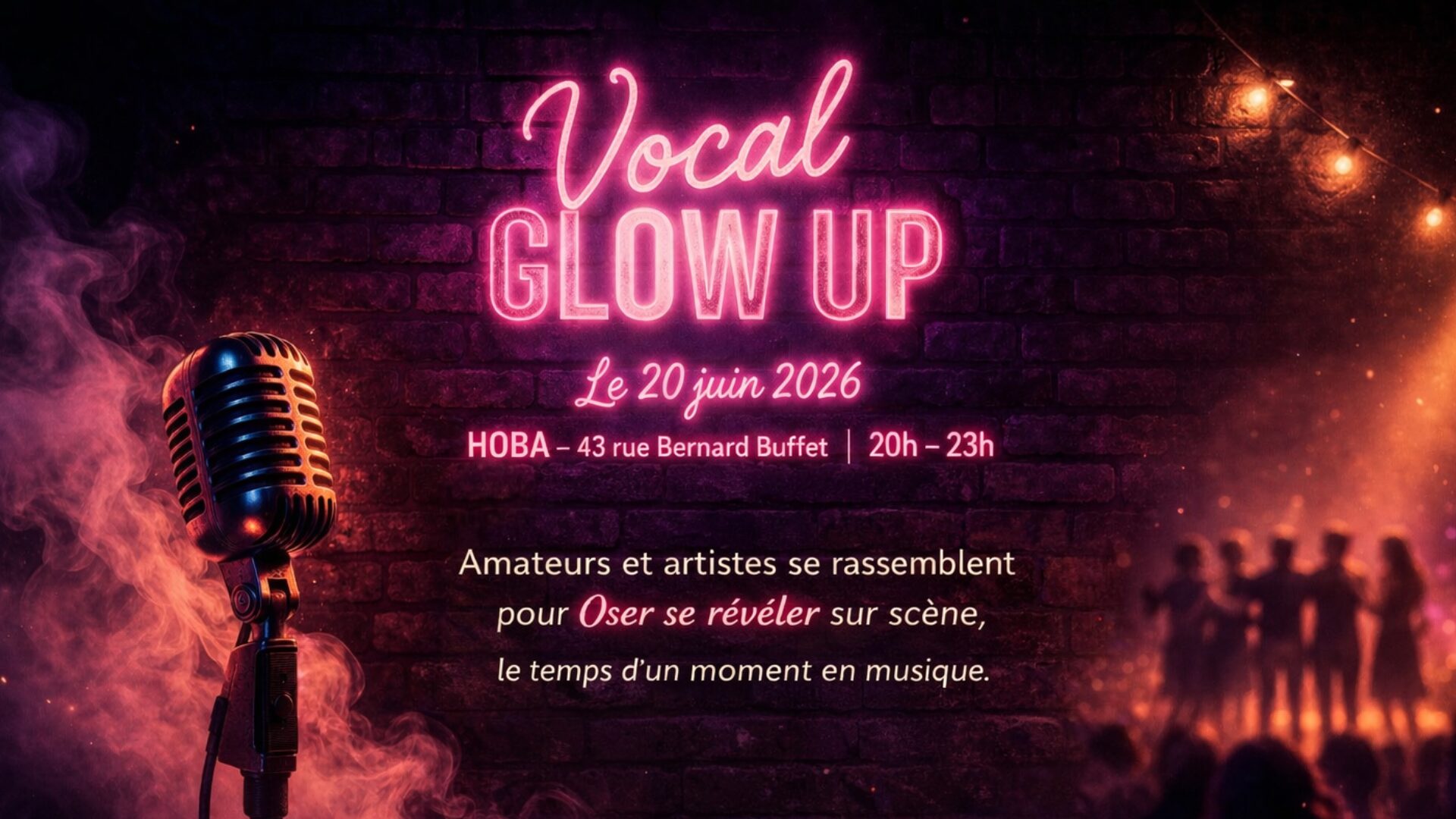 Avec Vocal Glow Up, elle crée des espaces bienveillants où l’on ose prendre sa place, dépasser ses blocages et vibrer sur scène avec sincérité et liberté. Une invitation à se lancer, à tester, et surtout à se faire confiance !